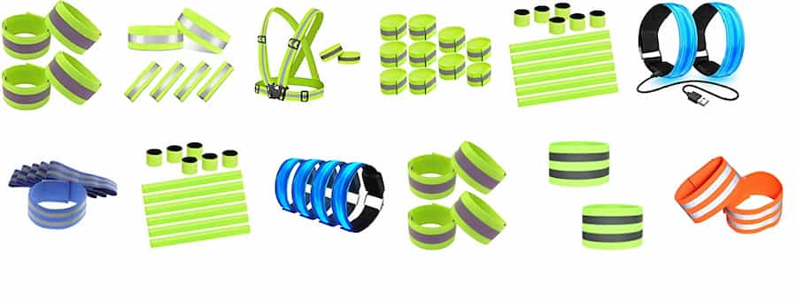 Tenemos a nuestra disposición en las tiendas especializadas, o incluso en tiendas chinas de barrio, un buen número de artefactos reflectivos. Desde cinta de pegar estilo celofán, pegatinas, brazaletes, chalecos reflectantes -los obligatorios en los automóviles-, serpentillas, colgantes, llaveros, etc para colocar en la cabeza, brazos, cintura, muñecas, tobillos, amarrar a las zapatillas,.....